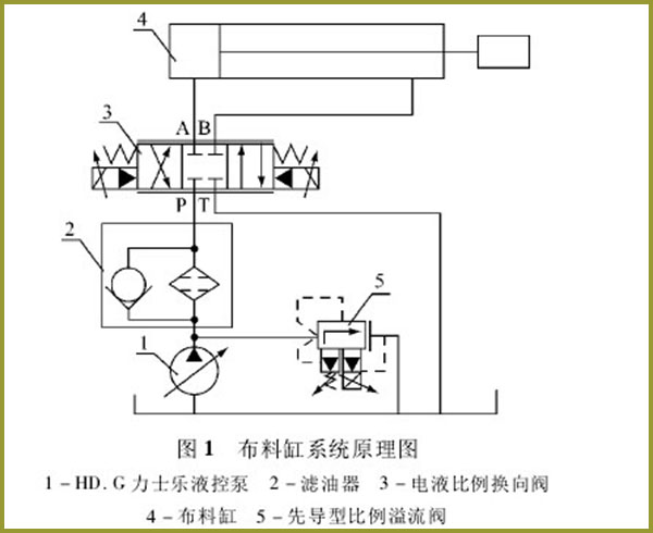 粉煤灰磚機(jī)的布料缸系統(tǒng),其動(dòng)力源為力士樂HD. G液控泵,排量V與先導(dǎo)壓力X,成正比例關(guān)系,X,由控制系統(tǒng)的比例溢流閥調(diào)定,X,工作區(qū)間為1一2 MPao HD. G液控泵的可達(dá)流量為364 L/min。